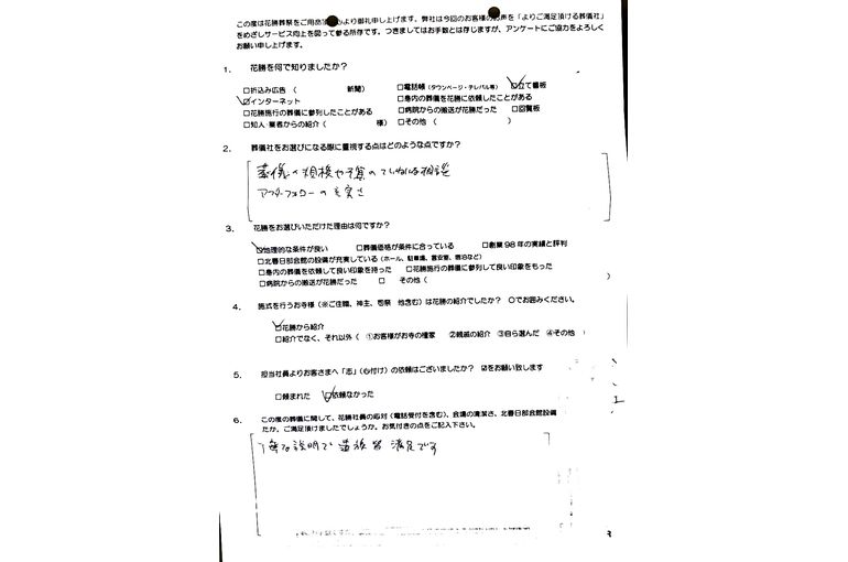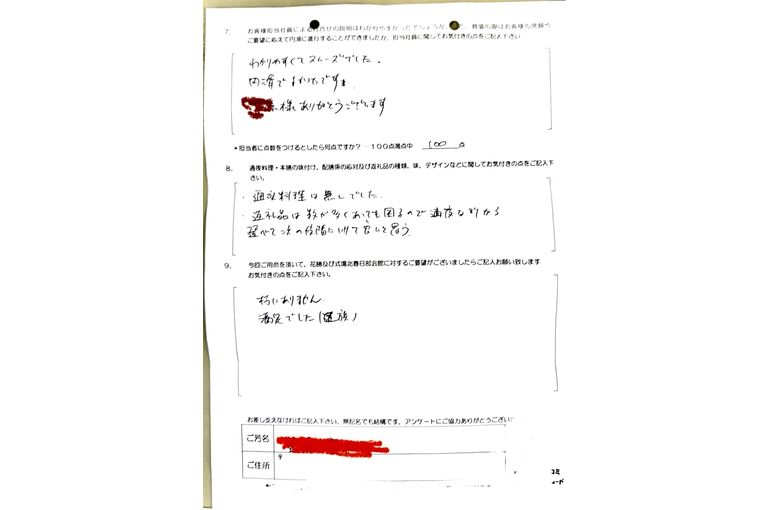 100点のアンケートありがとうございます。式後のお忙しい中、貴重なご意見をいただきました事、衷心より感謝いたします。お客様のご意見はしっかりと受け止めまだ未熟ではございますが、コツコツ努力し、良い仕事ができるよう精進します。#春日部葬儀 #杉戸町葬儀 #春日部家族葬 #小さなお葬式 #家族葬